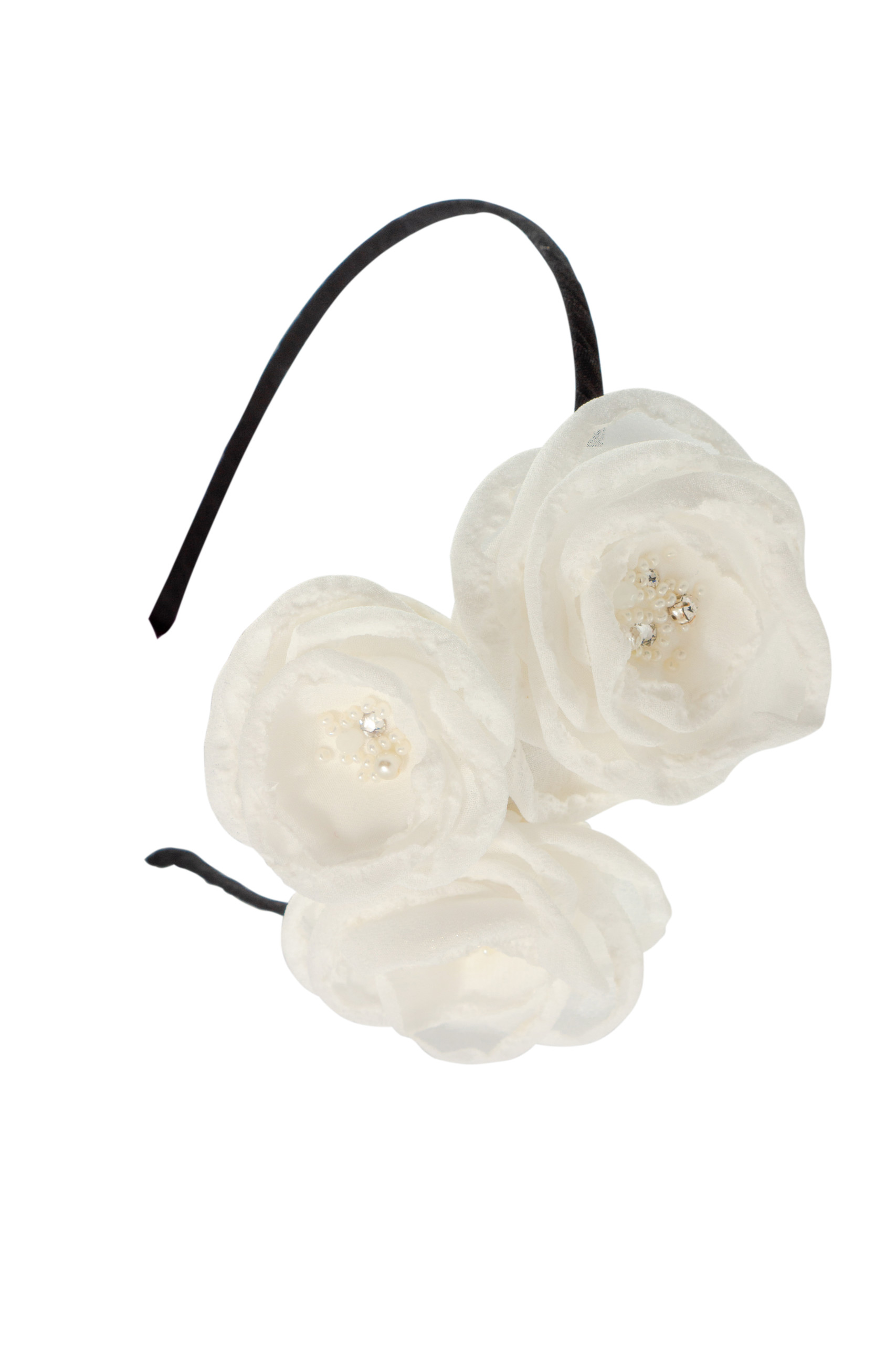 Ободок для девочки с тремя шифоновыми розами, серединка розы наполнена вышивкой из множества бусин хрусталя, жемчуга, камней “Сваровски”, бисера. Сам ободок имеет металлическую основу, покрытую тканью. Такое украшение на волосы сможет дополнить и завершить праздничный образ девочки, подходит дя символического банта на праздник в школу.